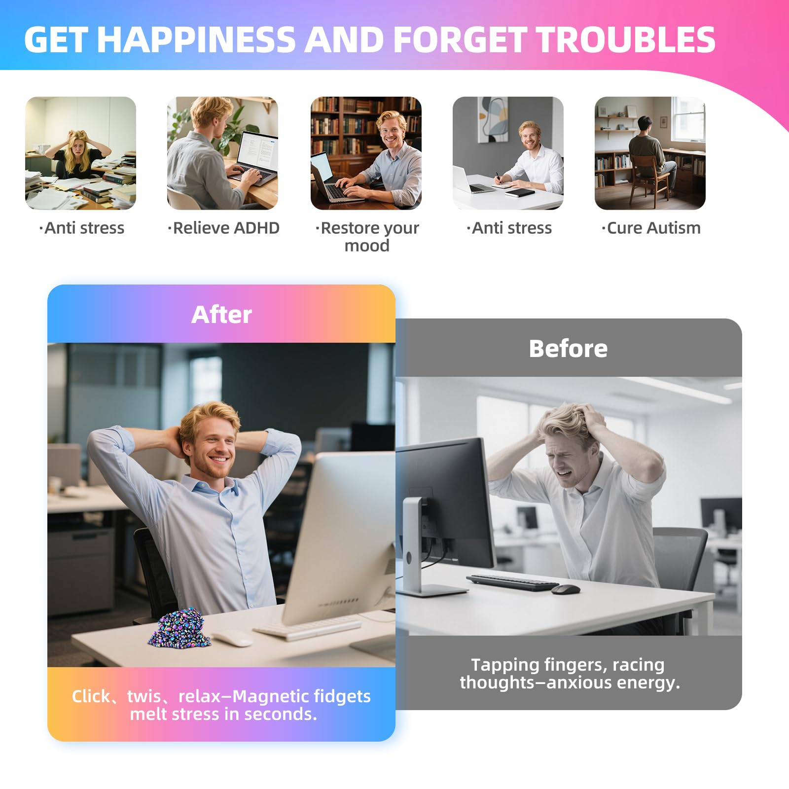 Details: Discover the perfect desk companion with these 550-piece magnetic putty - a captivating fidget toy designed for adults and teens seeking stress relief and focus enhancement. These weak magnetic spheres offer a satisfying tactile experience while being gentle enough for extended play. Perfect for those with anxiety, ADHD, or anyone needing a discrete way to stay centered during work hours. The putty construction provides a unique sensory experience as you shape, mold, and create endless configurations. Whether you're brainstorming at your desk or need a calming activity during breaks, these magnetic putty offer both entertainment and stress relief. They make thoughtful gifts for colleagues or loved ones who appreciate hands-on fidget tools. The set includes plenty of pieces for complex builds while remaining portable enough for office use. Keep your hands busy and your mind clear with this engaging desk accessory that doubles as a creative outlet.