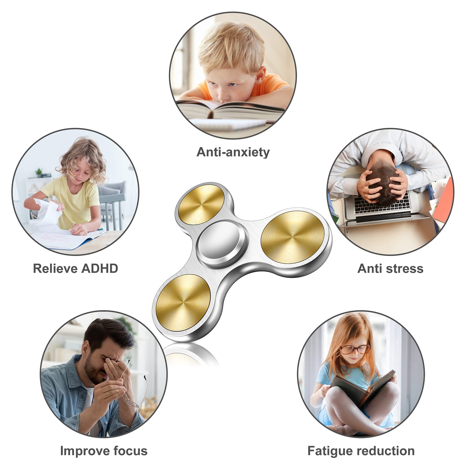 Brand: ATESSONColor: SilverFeatures: Fidget spinner: 3-5 minute average spins greatly fit for fidgety hands, ADD or ADHD sufferers helps relieve... Read more