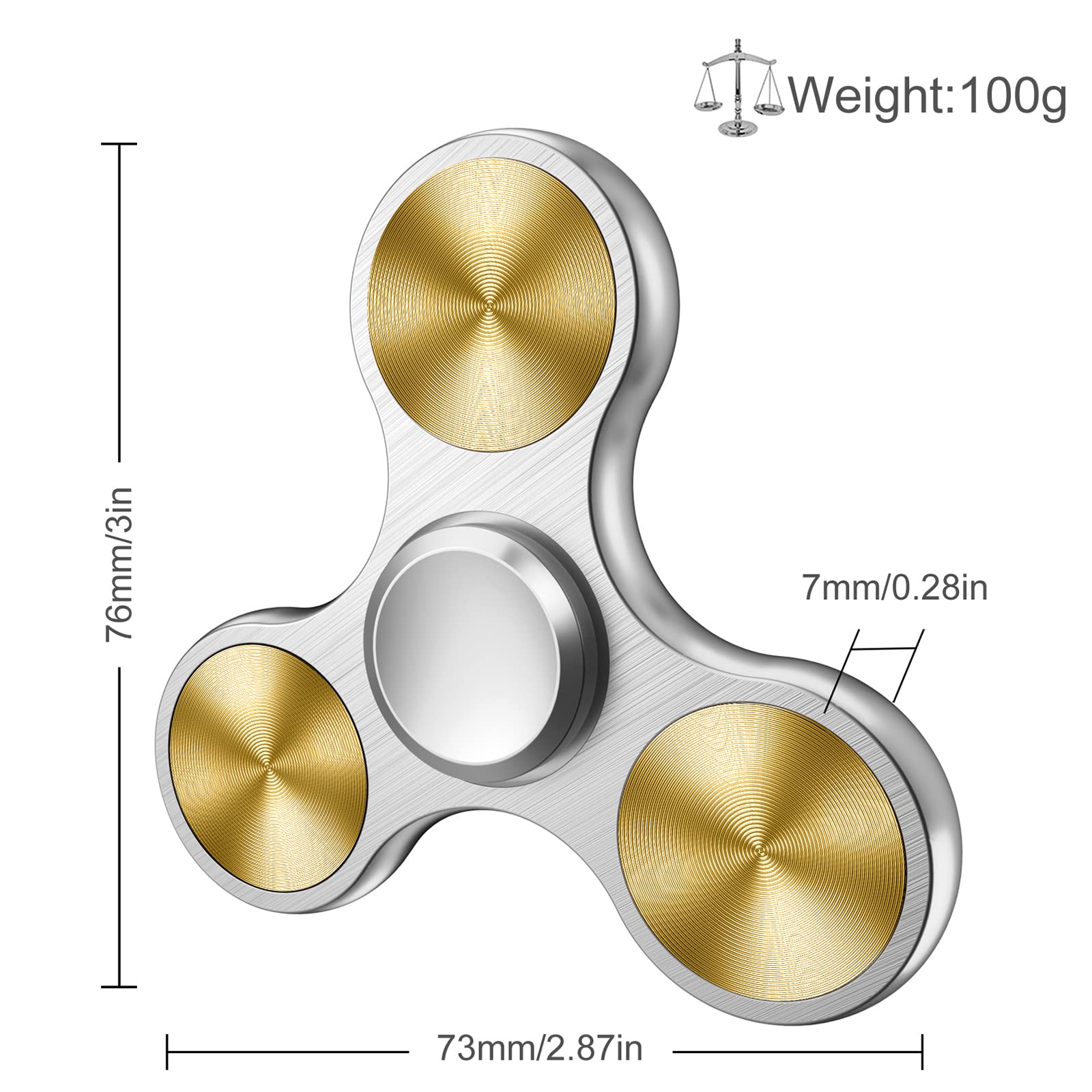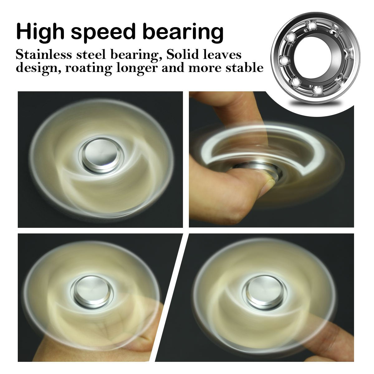 ATESSON Fidget Spinner Toy Ultra Durable Stainless Steel Bearing High Speed Precision Metal Material Hand Spinner Focus Anxiety Stress Relief Boredom Killing Time Toys Silver