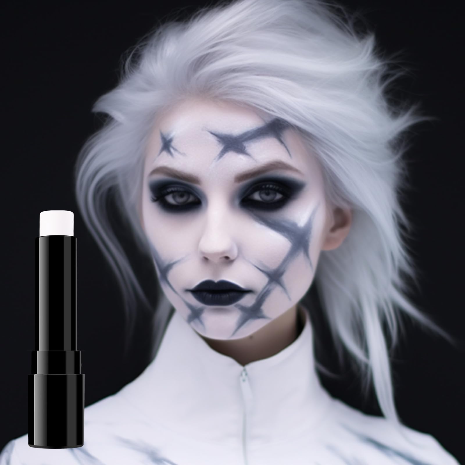 BADCOLOR White Face Body Paint Eye Black Stick for Adults Children Softball Football Baseball Sports , Non-Toxic Hypoallergenic for Halloween SFX Makeup Cosplay Skeleton Clown Costume Parties