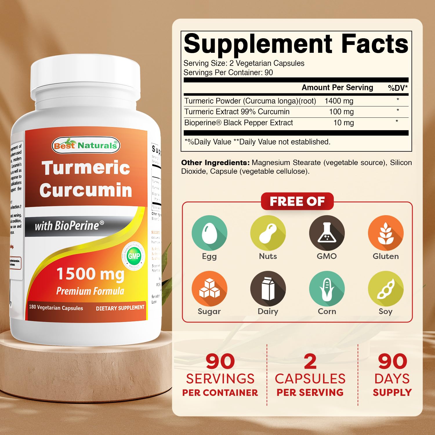 Best Naturals Turmeric Curcumin 1500mg/Serving with Bioperine - 180 Veggie Capsules