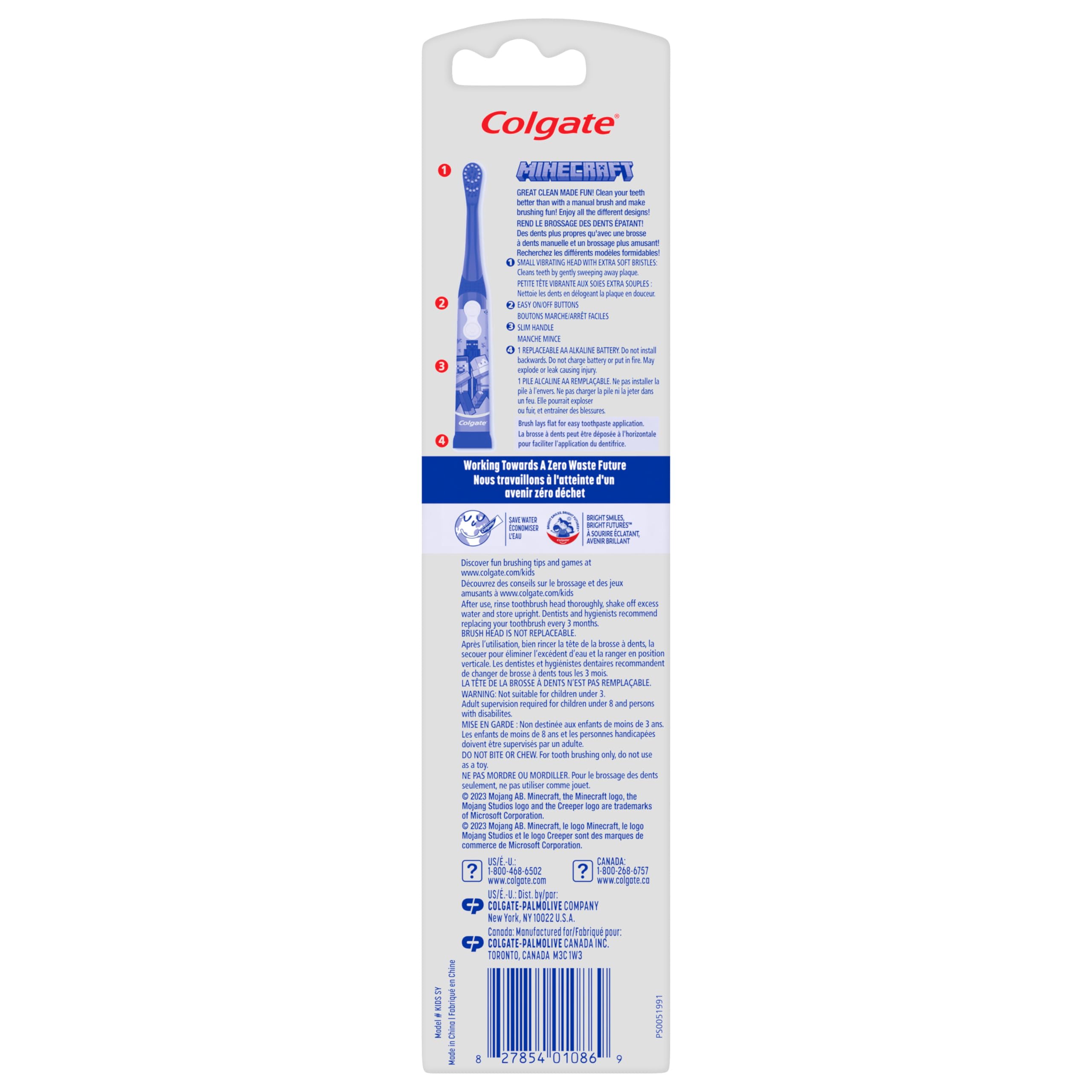 - Includes one (1) Colgate Kids Battery Powered Minecraft Toothbrush with included AA battery, Kids Battery Toothbrush