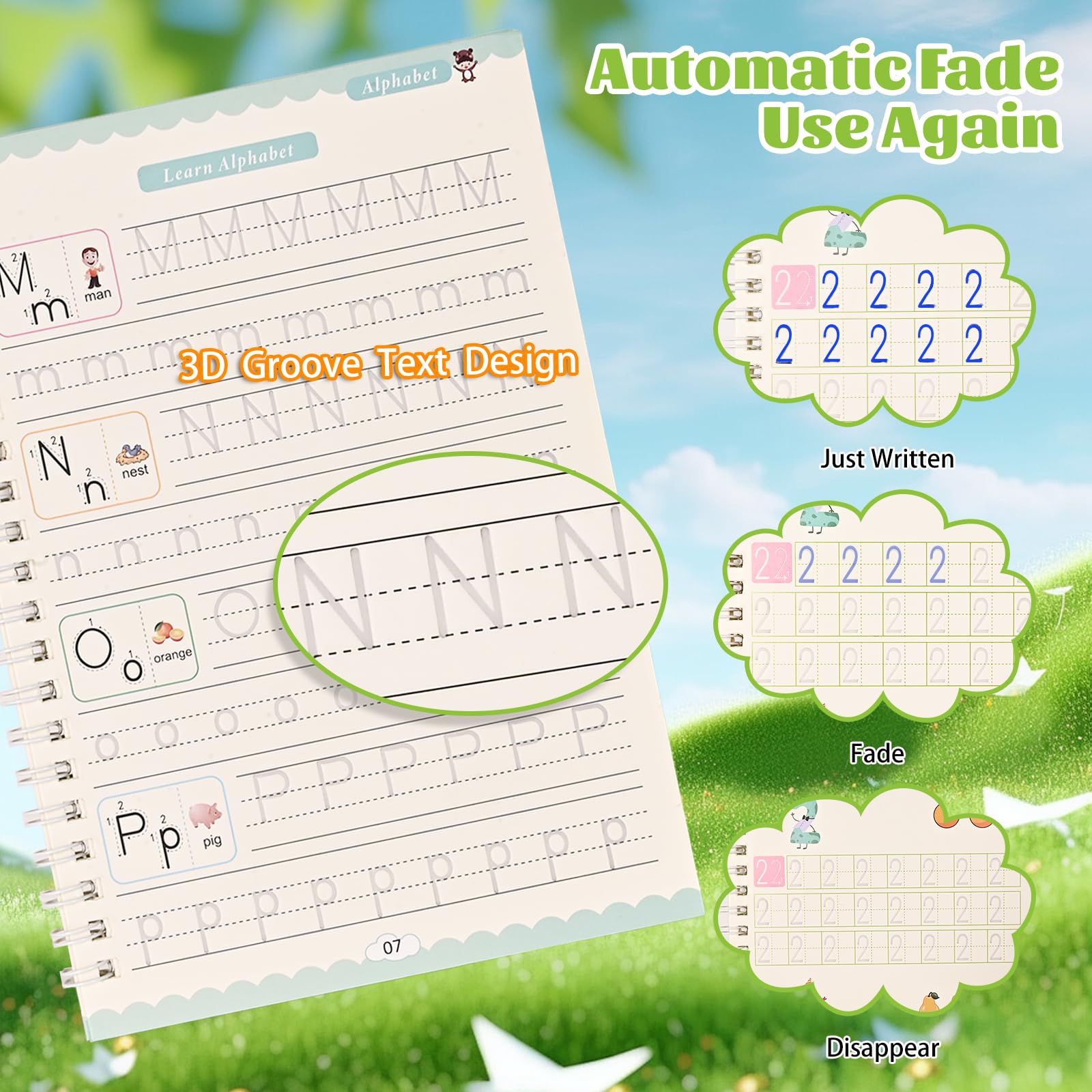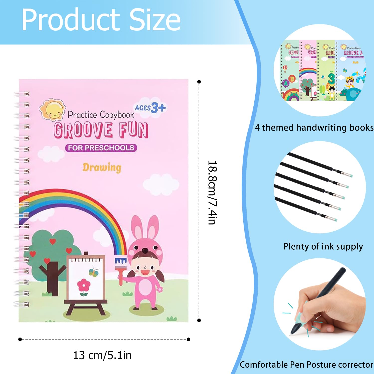 Handwriting Book Practice for Kids,Reusable Grooved Handwriting Workbooks,Writing Practice for Kids Ages 3-5
