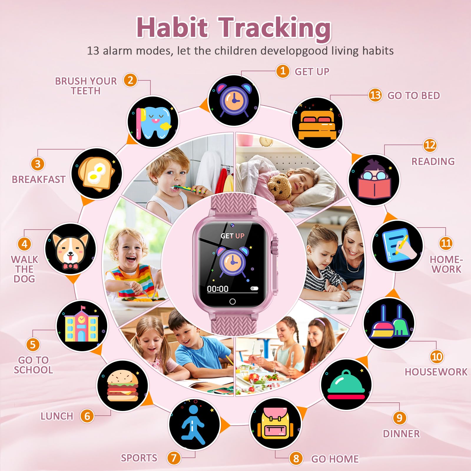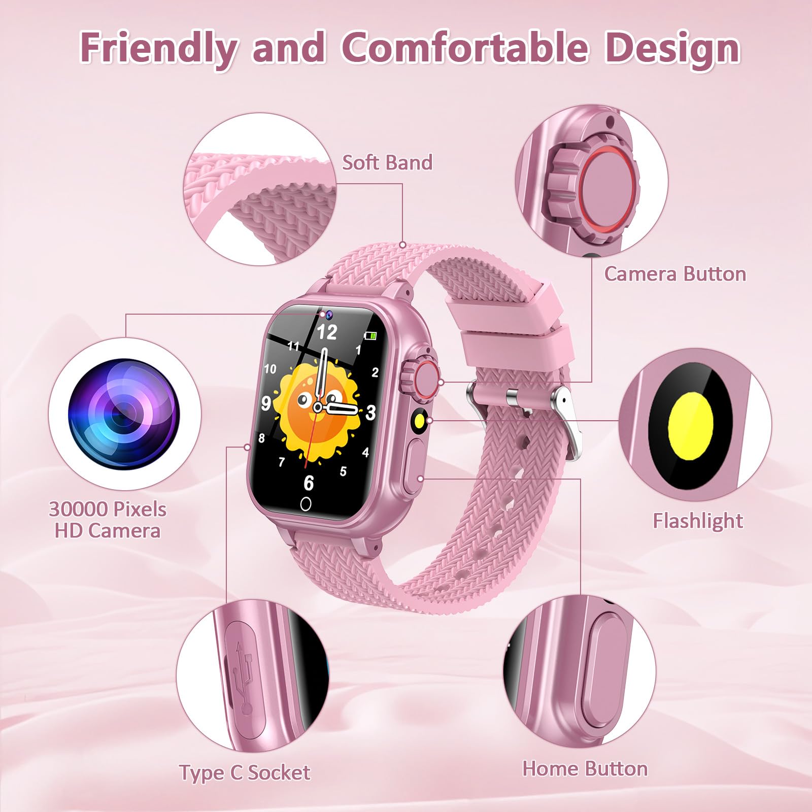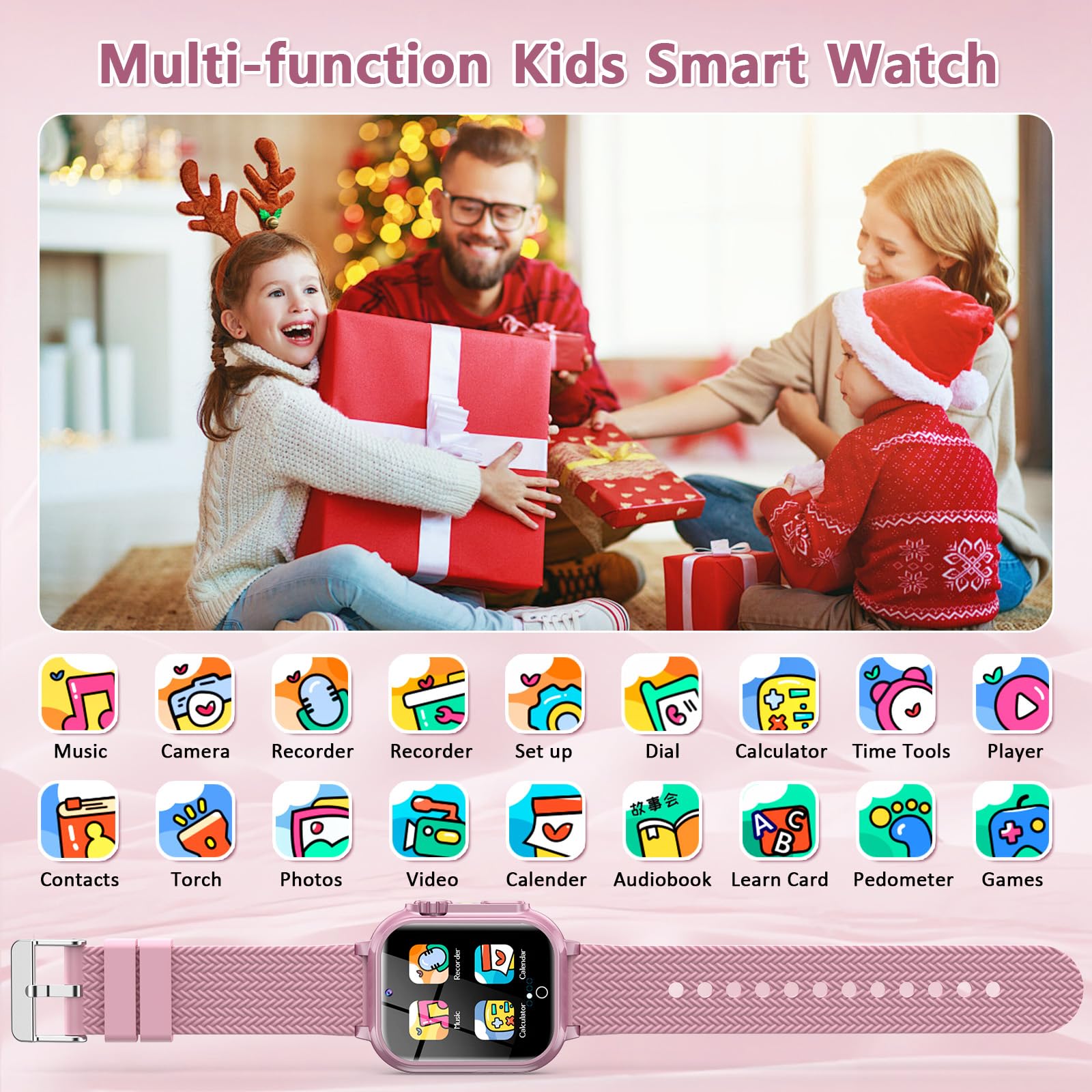 Kids Smart Watch for Girls Ages 6-12 with 32 Games, Touch Screen, Camera, Video/Audio Recording, Music Player, Alarm Clock, Calendar - Christmas Birthday Gifts Toys for Girls Boys (Pink)