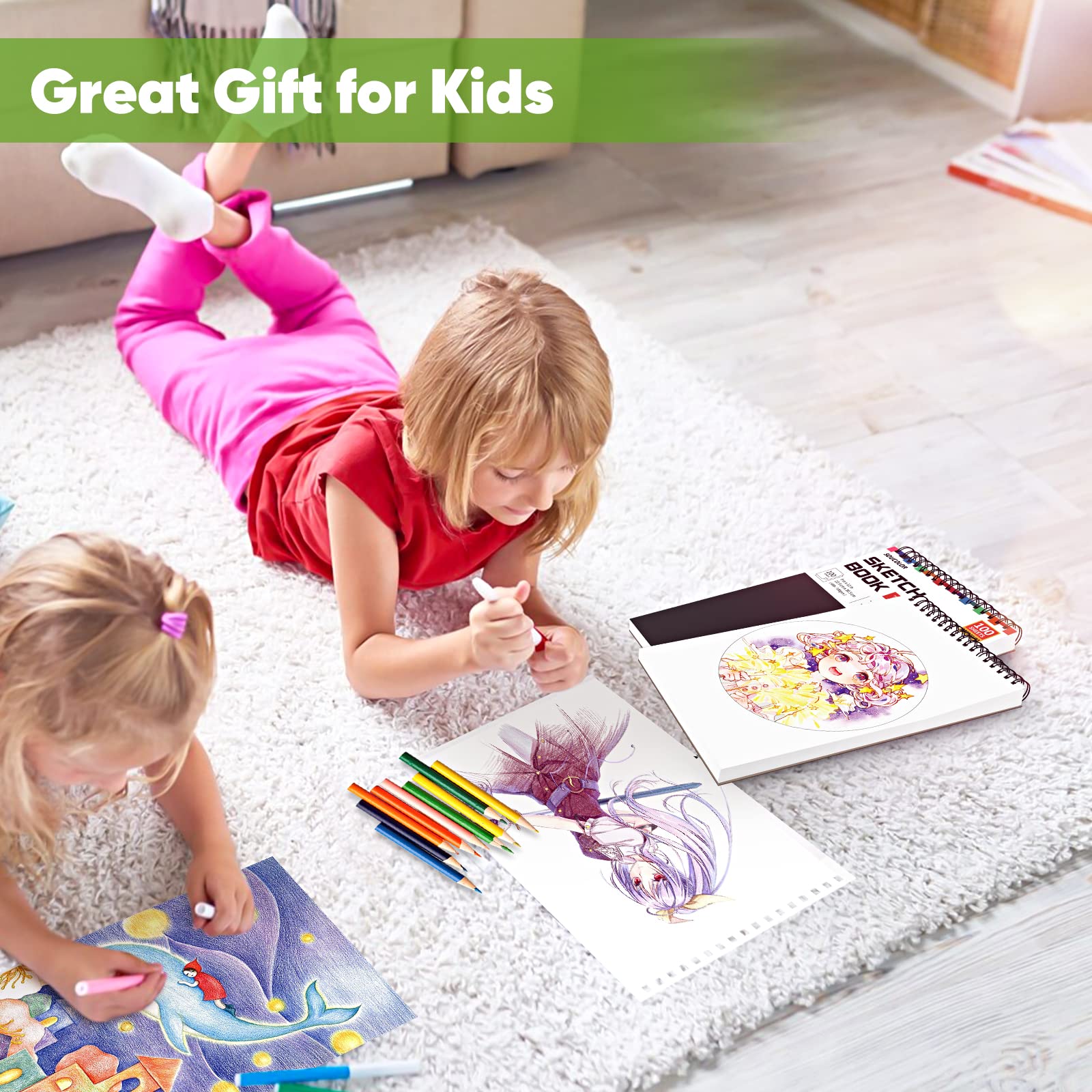 Soucolor 9" x 12" Sketch Book, 1-Pack 100 Sheets Spiral Bound Art Sketchbook, (68lb/100gsm) Acid Free Artist Drawing Book Paper Painting Drawing Writing Sketching Pad for Kids Adult Teens Girls Boys