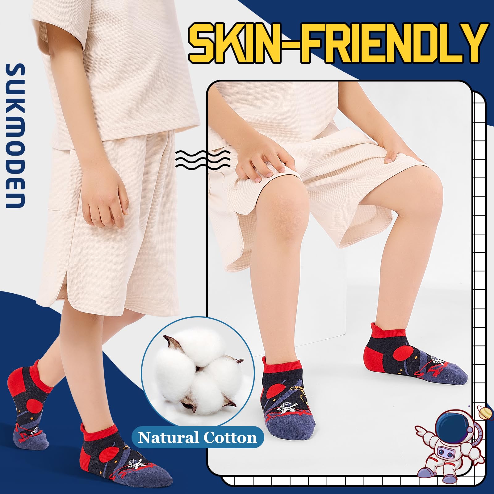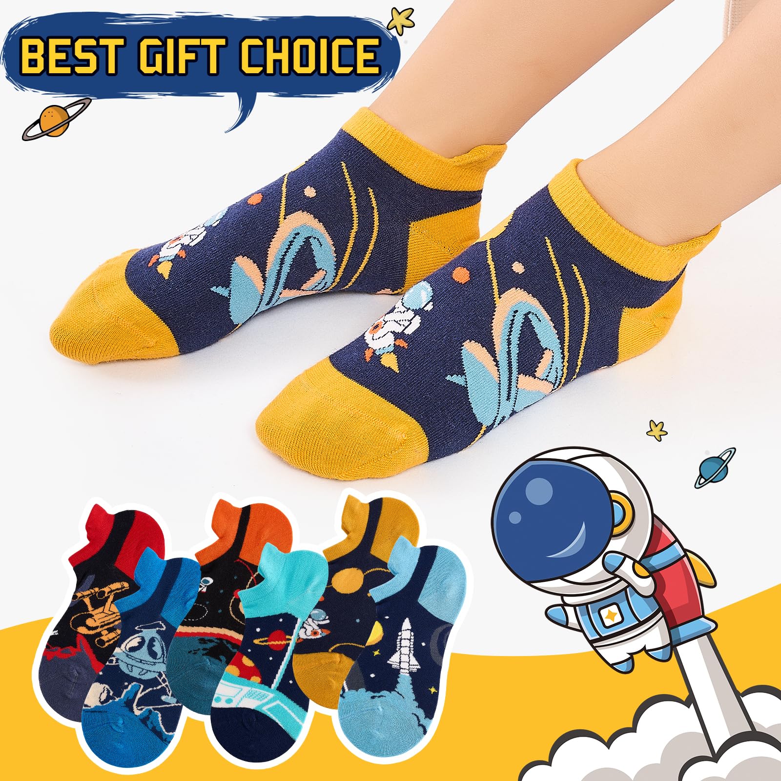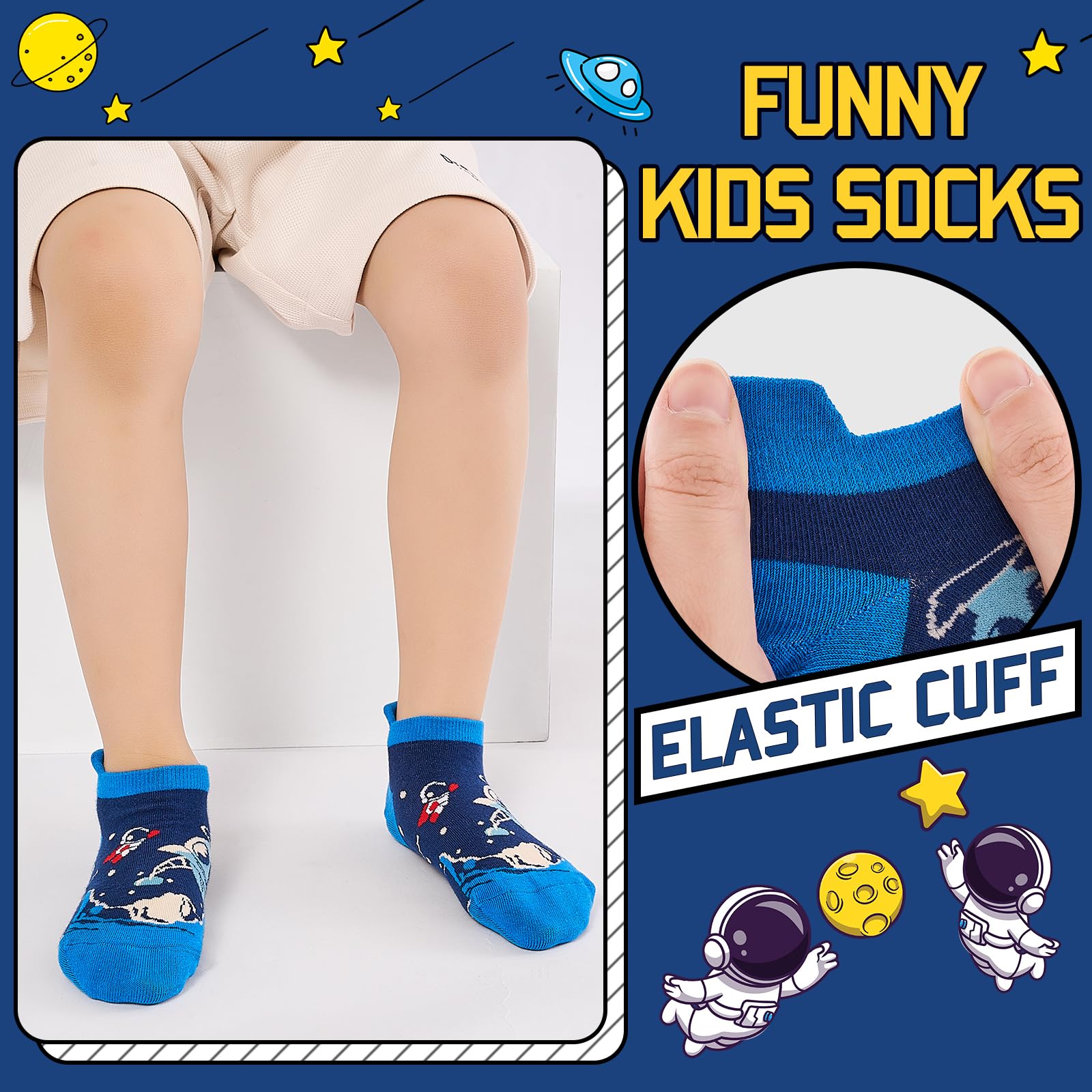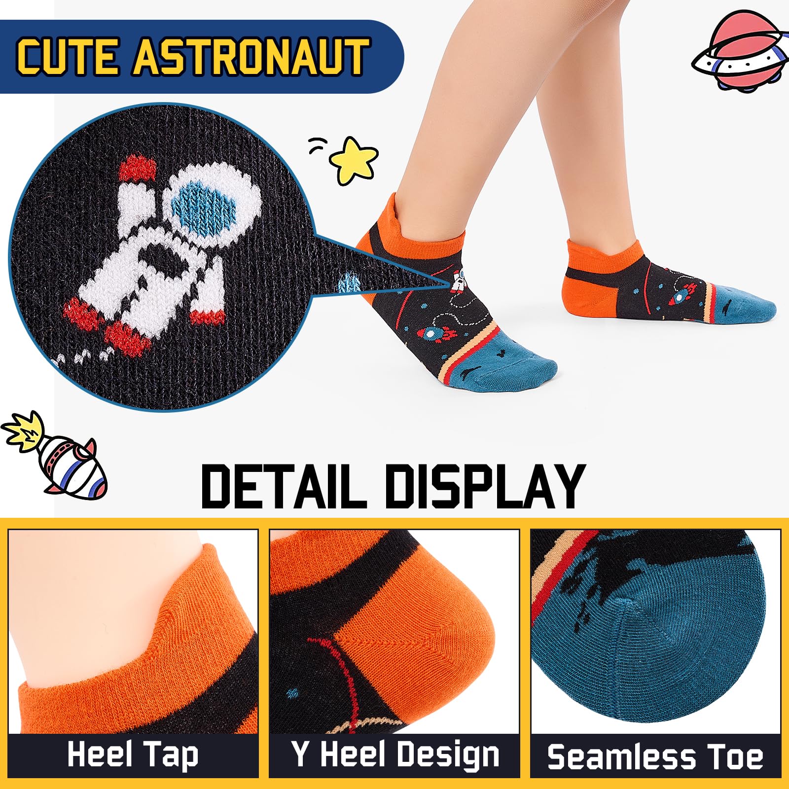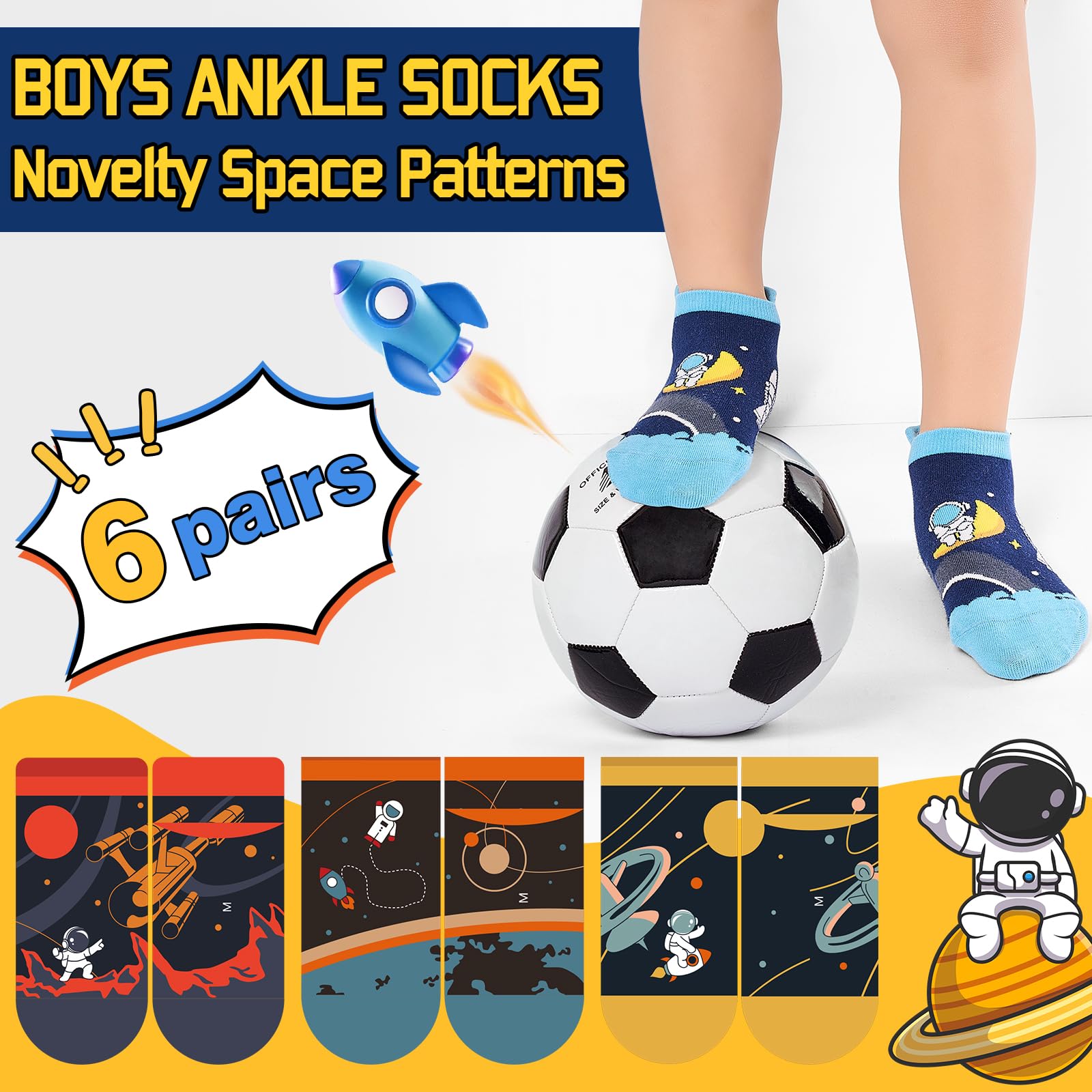 SukModen Kids Ankle Boys Socks, 6 Pairs Space Pattern No Show Funny Cute Cartoon Fun Boys Novelty Cotton Socks(5-8Y) in