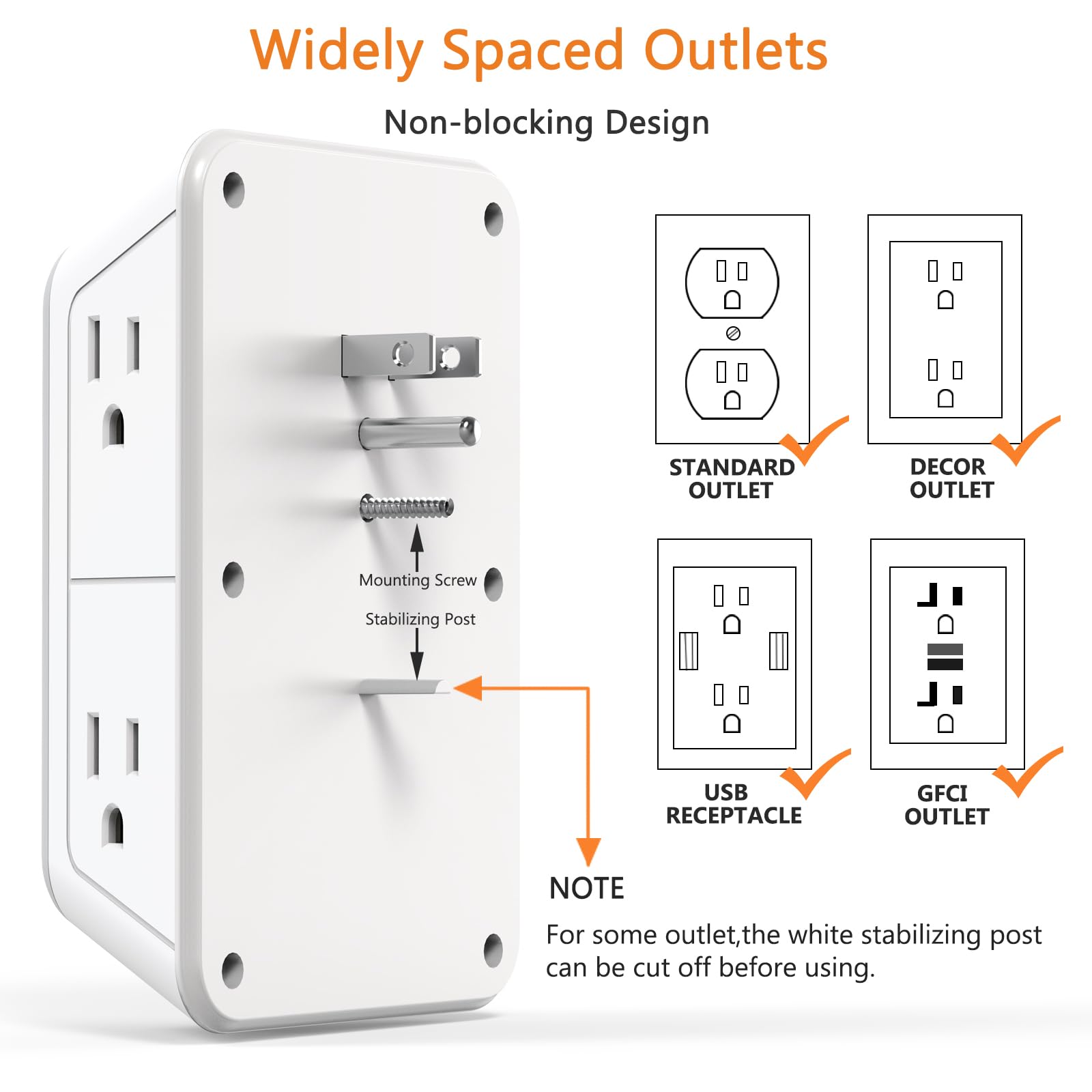 Brand: JcBlaonColor: WhiteFeatures: 【10 IN 1 Function USB Wall Outlet】This wall plug extender comes with 6 AC outlets, 2 USB... Read more