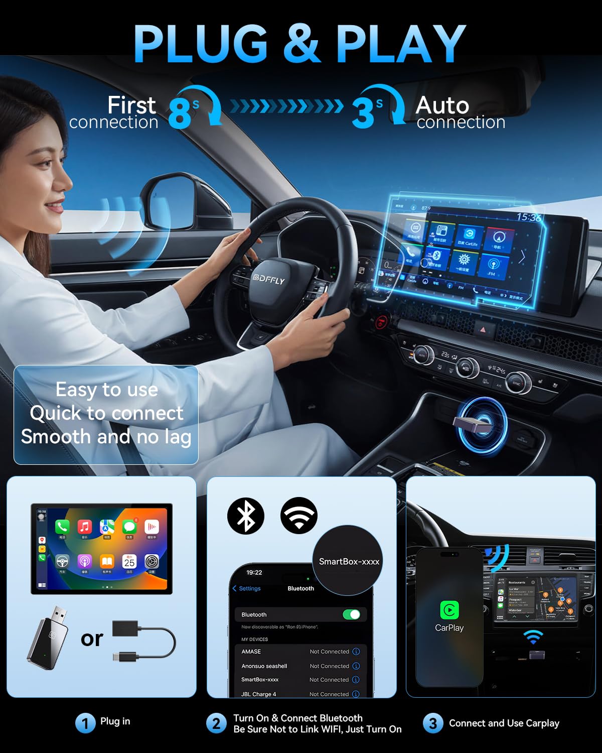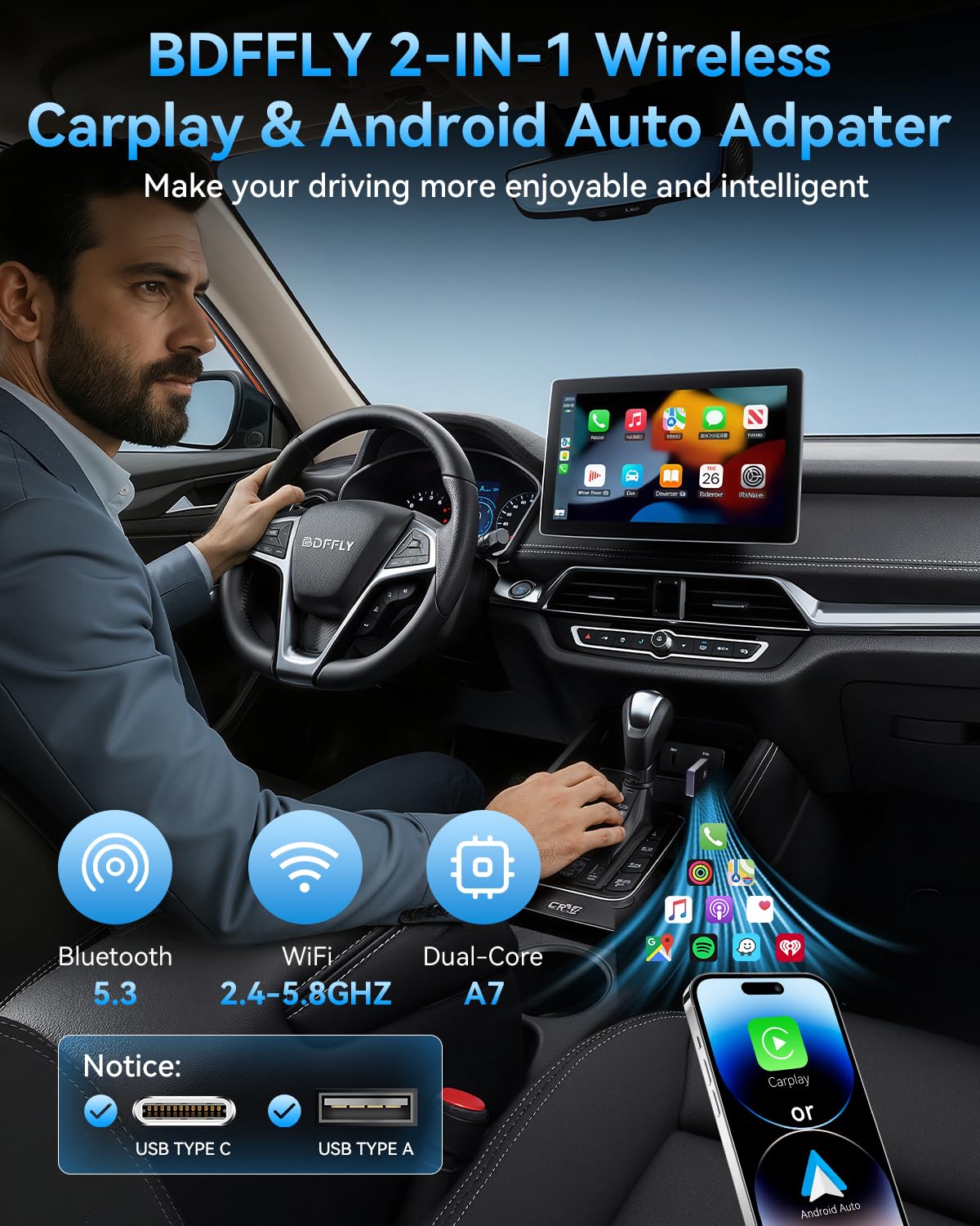 Brand: BDFFLYColor: BlackFeatures: 【Wireless CarPlay Adapter for Apple】No cables required! Convert your factory wired for Apple CarPlay to wireless and... Read more