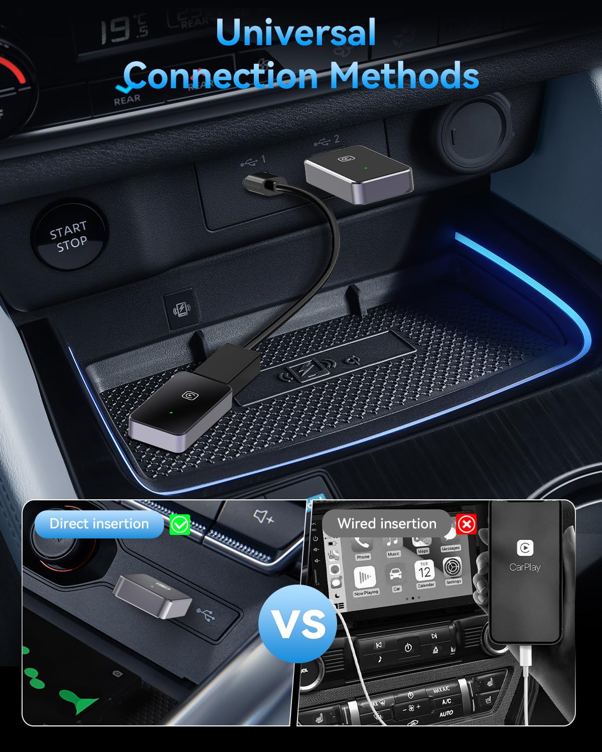 Wireless CarPlay Adapter for iPhone 2025 Upgraded, for Apple CarPlay Wireless Adapter, Plug and Play, Convert Wired Carplay to Mini Wireless CarPlay for iOS 10+