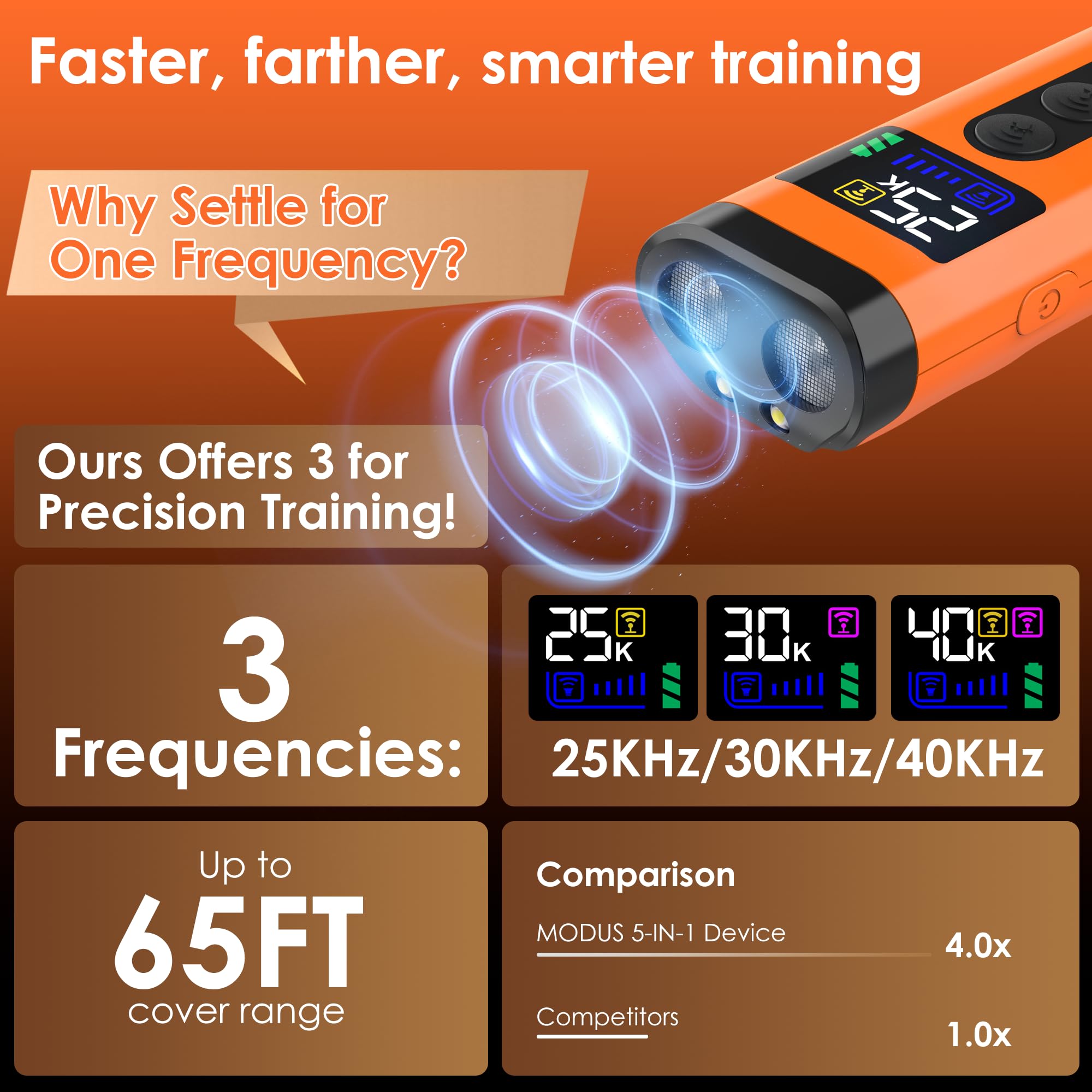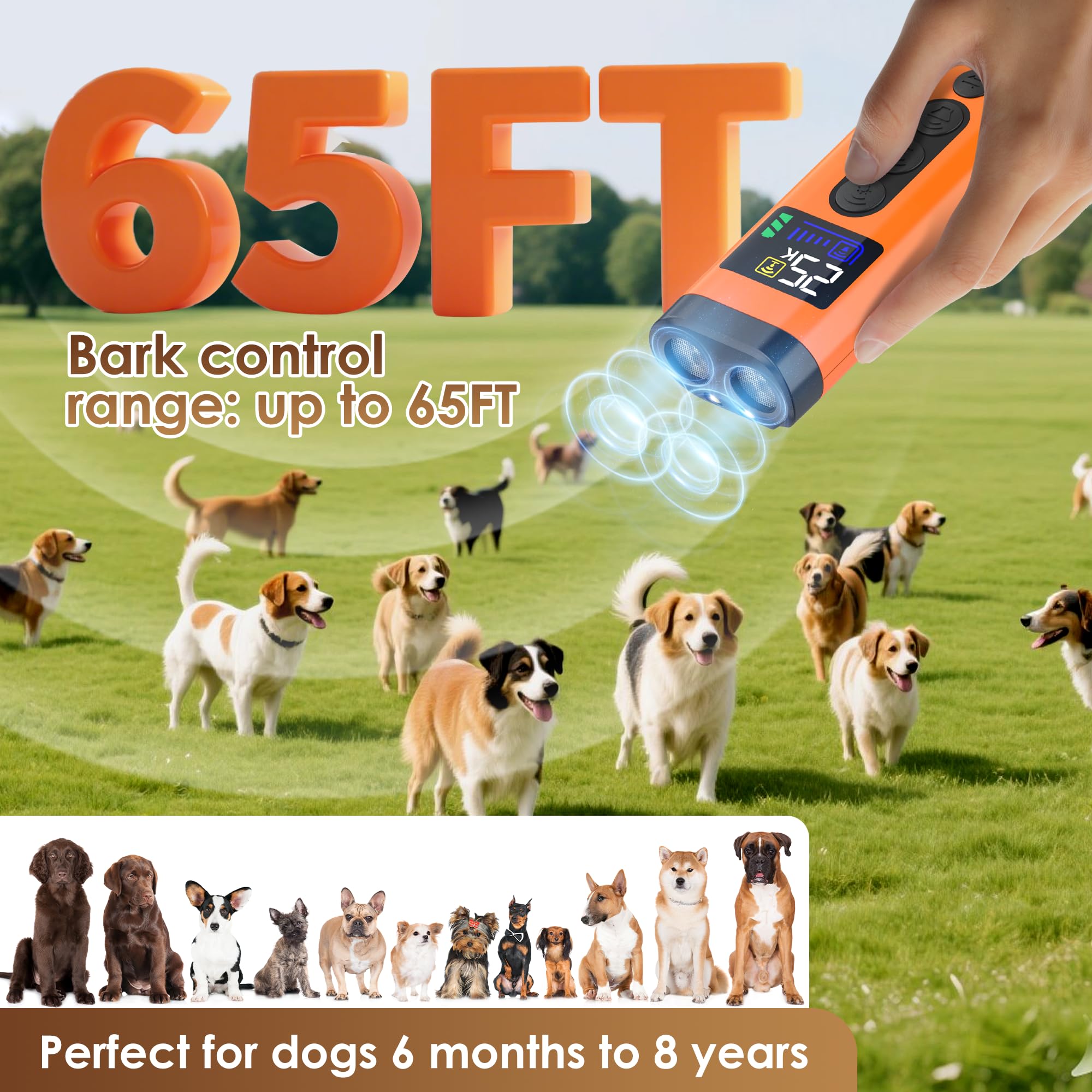 ZUIBAS Dog Bark Deterrent Device – 65FT Range Anti Barking Device for Dogs, Stops Neighbor’s Dog Barking with 3 Ultrasonic Frequencies (25/30/40kHz) & 5 Sound Modes, for Indoor & Outdoor Training